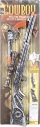 Ten zabawny zestaw kowbojski zapewnia dzieciom autentyczne wrażenia z zabaw w Dziki Zachód. Duży karabin o długości ok. 50 cm jest wyposażony w celownik, pistolet wygodnie leży w dłoni, a dzięki efektowi dźwiękowemu strzału zabawa wydaje się jeszcze bardziej realistyczna – i to wszystko bez konieczności używania baterii.