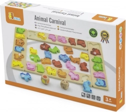 Odkryj kreatywny świat z grą Karnawał zwierzątek – drewnianą grą edukacyjną, która łączy naukę i zabawę. Kolorowe, solidne elementy są zaprojektowane z myślą o małych rączkach i wspierają małą motorykę, koncentrację oraz logiczne myślenie. Dzięki różnym wariantom rozgrywki dzieci nigdy się nie nudzą.