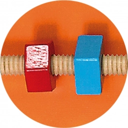 Labirynt z kuleczką i śrubki na gwincie trenują precyzję palców, chwyt oraz koordynację ręka–oko. Dzieci przesuwają kuleczkę, ćwicząc cierpliwość i koncentrację.