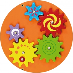 Kolorowe koła zębate można układać i obracać, co wspiera myślenie logiczne oraz rozumienie związku przyczynowo-skutkowego. Świetna zabawa z walorem edukacyjnym.