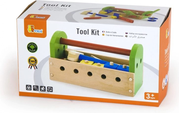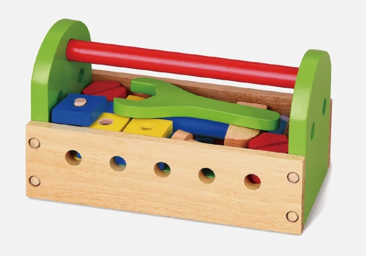 Ten wysokiej jakości drewniany zestaw narzędzi w solidnej skrzynce jest idealny na pierwsze próby konstrukcyjne. Dzieci ćwiczą motorykę małą, myślenie logiczne i koordynację ręka–oko podczas wkręcania, wbijania i dokręcania. Kolorowe elementy i realistyczne narzędzia pobudzają kreatywną i odgrywaną zabawę.