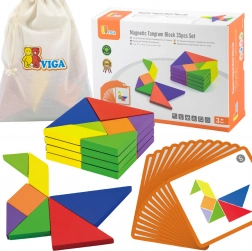 Drewniany tangram VIGA z kartami – edukacyjna układanka z drewna FSC