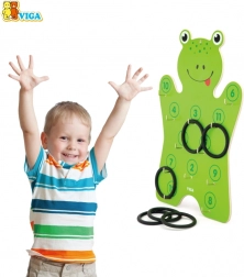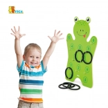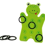 Zabawna drewniana gra dla dzieci od 3 lat, która rozwija małą motorykę, koordynację oko–ręka i celność. Żabi cel z ponumerowanymi kołkami zamienia każdy rzut w rywalizację – wystarczy trafić w odpowiednie pole punktowe i zebrać jak najwięcej punktów!