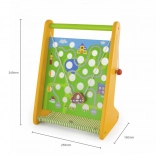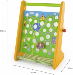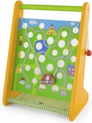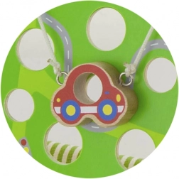 Drewniany labirynt z samochodzikiem jest idealną edukacyjną zabawką dla dzieci od 3 roku życia. Przy pomocy dwóch sznurków dzieci mogą przesuwać samochodzik po zabawnej trasie, co poprawia ich umiejętności motoryczne.