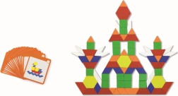 Geometriczne bloki dostarczają wiele zabawy. Dzieci mogą kopiować wzory z dołączonych kart lub tworzyć własne kombinacje. Bloki można przymocować do tablicy magnetycznej lub bawić się nimi na stole. Ten produkt został zaprojektowany do gry edukacyjnej, która pobudza małą motorykę oraz percepcję przestrzenną.