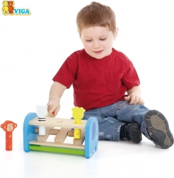 Uderzenia młoteczkiem rozwijają chwyt, siłę i koordynację ręka–oko, a zasada przyczyna–skutek uczy dzieci logicznego myślenia.