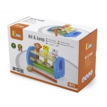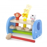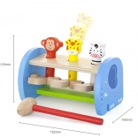 Ta wysokiej jakości drewniana zabawka oferuje bezpieczną i kolorową zabawę z uroczymi zwierzątkami. Dzieci za pomocą młoteczka stukają w mechanizm, który sprawia, że zwierzątka wyskakują – doskonalą w ten sposób chwyt, siłę ścisku i precyzję ruchu. Solidna konstrukcja i gładkie krawędzie zapewniają bezpieczeństwo podczas codziennego użytkowania.