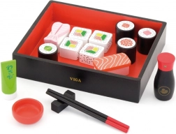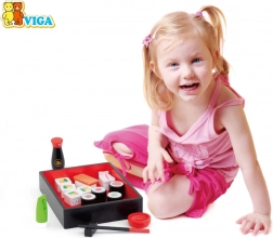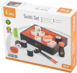 Drewniany zestaw sushi wspiera kreatywność i pomaga rozwijać małą motorykę dzieci.
