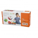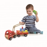 Kolorowy design dźwigu z kontenerami cieszy oko i zachęca do zabawy. Odłączana przyczepa gwarantuje różnorodność podczas zabawy, co wspiera kreatywność dzieci.