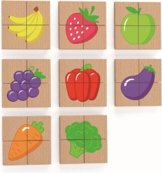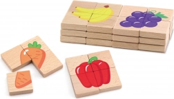 Ten zestaw puzzli z motywami owoców wspomaga rozwój zdolności poznawczych i oferuje świetną formę nauki przez zabawę.