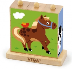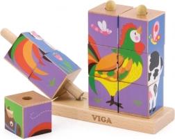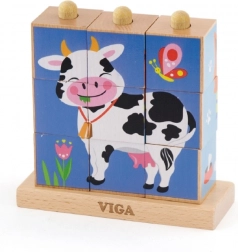 Z 9 kostek ułożycie 4 różne motywy – krówkę, kurkę, konika i pieska. Dzieci ćwiczą percepcję wzrokową, rozróżnianie kolorów i trenują cierpliwość.