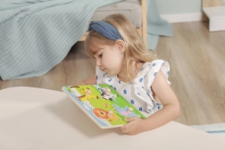 Pod każdym elementem znajduje się obrazek ułatwiający dopasowanie. Dzieci w naturalny sposób ćwiczą rozpoznawanie kształtów i zwierząt.
