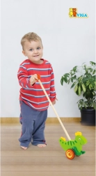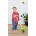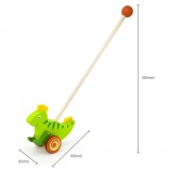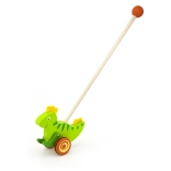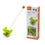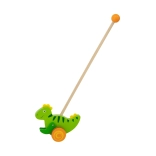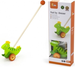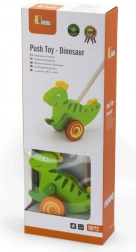 Drewniana pchana zabawka Dinozaur to klasyczna zabawka przeznaczona dla dzieci, które zaczynają się poruszać. Ten solidny dodatek wyposażono w kółka z antypoślizgowymi nasadkami, które chronią podłogę i ułatwiają ruch. Zielony dinozaur energicznie porusza łapkami podczas pchania, co przyciąga uwagę i motywuje dziecko do dalszej aktywności.