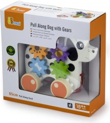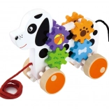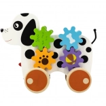 Ten drewniany piesek do ciągnięcia został zaprojektowany tak, aby stymulować nie tylko aktywność fizyczną dziecka, ale także jego zdolności poznawcze. Gdy piesek jedzie, zębatki się obracają, co tworzy interaktywne doświadczenie dla małych odkrywców.