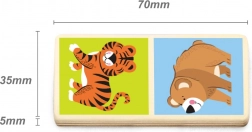 Odkryj barwny świat zwierząt z drewnianym dominem, zaprojektowanym tak, aby łączyć zabawę z nauką. Każdy element domina ma po jednej stronie piękną ilustrację różnych dzikich zwierząt, co pomaga dzieciom poznawać świat wokół nas.