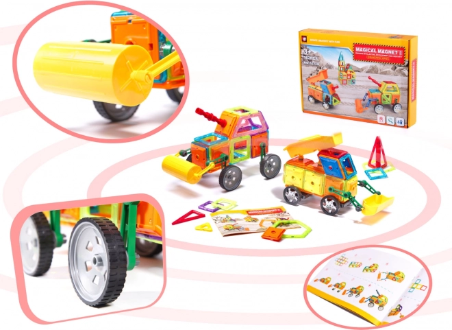 Zdobądź niezawodną i kreatywną zabawę dla swojej pociechy z różnorodnym zestawem magnetycznych elementów, który dodatkowo zawiera koła, łączniki i naklejki do osiągnięcia unikalnych rezultatów.