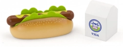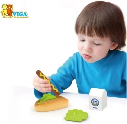 Ten wysokiej jakości drewniany zestaw VIGA zapewnia dzieciom realistyczną zabawę w gotowanie. Hot dog z bułką, sałatą i musztardą wraz z „kartonem mleka” rozwijają kreatywność i uczą podstaw zabaw społecznych. Dzięki solidnemu drewnianemu wykonaniu zestaw idealnie nadaje się do codziennej zabawy.