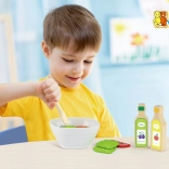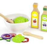 Ten wysokiej jakości drewniany zestaw sałatkowy zapewnia dzieciom realistyczną zabawę w kuchnię. Dzięki bogatemu wyposażeniu mali kucharze mogą przygotować własną sałatkę, mieszać składniki w misce i serwować przy pomocy sztućców. Zabawa wspiera zdrowe nawyki i naturalnie uczy rozpoznawać poszczególne rodzaje warzyw.