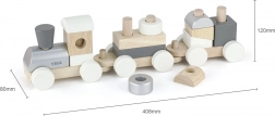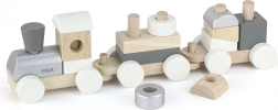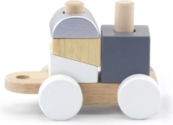 Ten elegancki drewniany pociąg–układanka łączy solidne wykonanie, naturalne materiały i naukę przez zabawę. Dzieci mogą dowolnie przestawiać klocki, trenować chwyt oraz rozwijać koordynację ręka–oko i wyobraźnię. Dzięki przyjaznemu designowi i gładkim krawędziom zabawa jest bezpieczna i przyjemna.