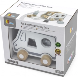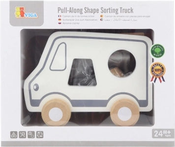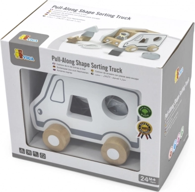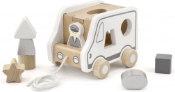 - Drewniana zabawka do ciągnięcia i sorter kształtów (ciężarówka)