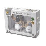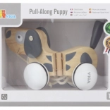 Uroczy drewniany piesek do ciągnięcia wspiera pierwsze kroki i koordynację ruchową. Wysokiej jakości naturalne drewno, gładkie krawędzie i stabilne kółka gwarantują bezpieczną zabawę. Dzięki sznureczkowi łatwo go prowadzić, co motywuje dzieci do aktywnego ruchu i rozwija małą i dużą motorykę.
