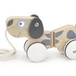 Drewniany piesek do ciągnięcia VIGA to idealny towarzysz dla małych odkrywców od 18 miesięcy. Połączenie naturalnego drewna ze stonowanymi kolorowymi akcentami wygląda ponadczasowo i jednocześnie radośnie. Solidne wykonanie i płynnie toczące się kółka zapewniają gładki ruch po podłodze, a dołączony sznureczek ułatwia prowadzenie zabawki.