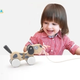 Piesek do ciągnięcia motywuje dzieci do chodzenia i biegania, a także naturalnie rozwija dużą motorykę oraz równowagę.