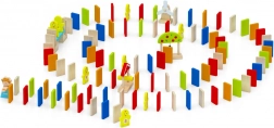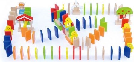 Gra rozwija kluczowe umiejętności: trenuje koordynację oko–ręka, wspiera koordynację, precyzję ruchów oraz współpracę między dziećmi. Po ułożeniu wystarczy popchnąć pierwszy element i cieszyć się idealnym efektem domina. Praktyczne wiaderko z rączką ułatwia przechowywanie i przenoszenie.