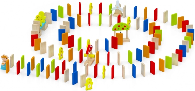 Odkryj zabawną i edukacyjną grę dla dzieci – drewniane domino Viga z motywem farmy. Zestaw zawiera 116 kolorowych elementów w różnych kształtach, które wspierają cierpliwość, koncentrację, motorykę małą i kreatywność. Buduj pomysłowe tory, popchnij pierwszy klocek i obserwuj efektowny efekt domina. Praktyczne opakowanie z uchwytem idealnie sprawdzi się także jako prezent.