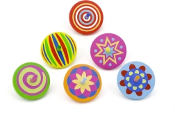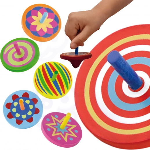 Kolorowe drewniane bączki VIGA zainteresują każde dziecko podczas zabawy. Podczas kręcenia bączki tworzą interesujące wzory, które podobają się dzieciom.
