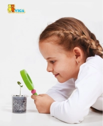 - Umożliwia dzieciom obserwację powiększonych detali roślin, owadów oraz śladów ludzi i zwierząt.