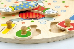 Wytrzymała drewniana płyta z gładkimi krawędziami jest idealna do codziennej zabawy w domu i w przedszkolu. Dzięki dużej średnicy ok. 30 cm liczby są dobrze czytelne, a praca z elementami jest wygodna.