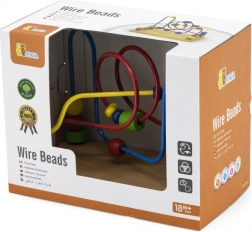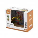 Ten wysokiej jakości drewniany labirynt z koralikami to idealna pomoc w rozwoju umiejętności dziecka. Dzięki płynnemu przesuwaniu koralików po różnie wyprofilowanych drutach dzieci ćwiczą chwyt, koordynację ruchową i percepcję wzrokową. Solidna drewniana podstawa zapewnia stabilność, a gładkie krawędzie i nasycone kolory sprzyjają bezpiecznej i atrakcyjnej zabawie.