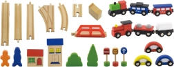 - Tory, 2 × lokomotywa, 4 × wagon, 3 × samochodzik, akcesoria (znaki, drzewa, domki itp.)