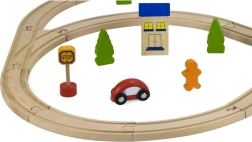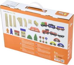 Zbuduj własny świat na torach! Drewniana kolejka o różnorodnym układzie tras pozwala dzieciom tworzyć rozmaite połączenia, pokonywać mosty i łączyć transport z miastem dzięki dołączonym samochodzikom i akcesoriom. Wysokiej jakości drewniane wykonanie jest trwałe i przyjemne w trzymaniu.