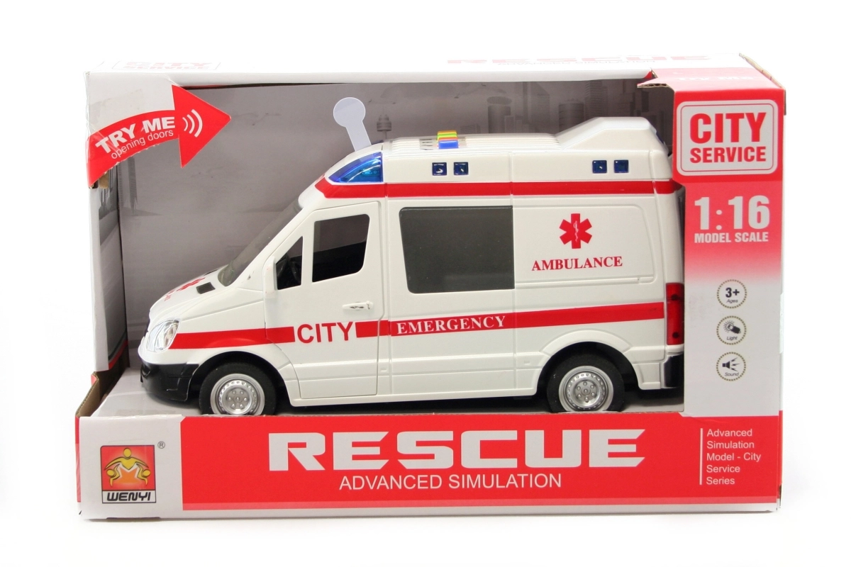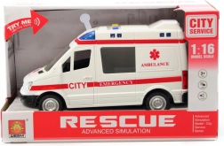 Realistyczna plastikowa karetka na baterie ucieszy każdego małego ratownika. Po naciśnięciu przycisków na dachu świeci i wydaje dźwięki, ma otwierane drzwi i kompaktowe wymiary idealne do dziecięcej dłoni.