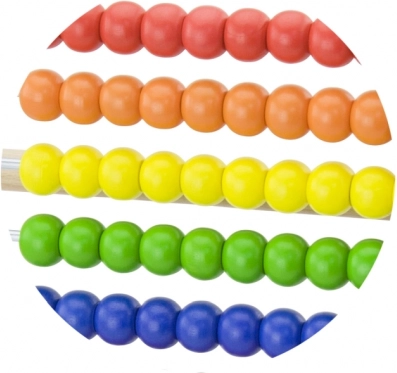 Dziesięć rzędów wyraźnie kolorowych koralików wspiera percepcję wzrokową, sortowanie oraz pierwsze zadania rachunkowe.