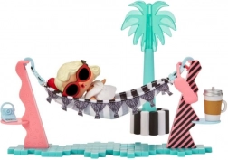 Ciesz się wakacyjnym relaksem z ulubioną lalką L.O.L. Surprise w 6. serii mebelków z dodatkami. Rozpakuj ponad 10 niespodzianek, zmień opakowanie w samodzielną przestrzeń do zabawy i stwórz tropikalny kącik z hamakiem, palmą i stylowymi akcesoriami. Kompatybilne z Domem OMG 2, idealne do kreatywnej i wyobrażeniowej zabawy.