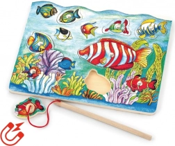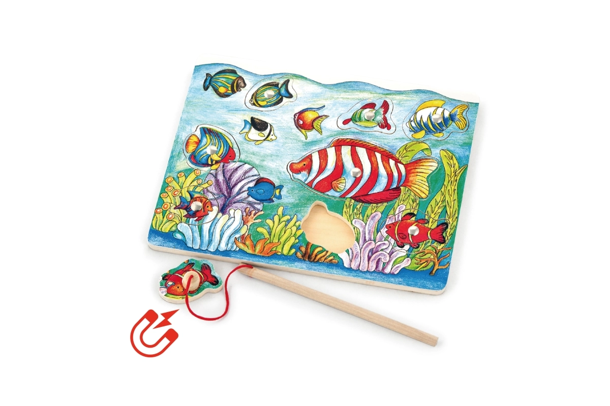 Ta drewniana gra w łowienie rybek daje dzieciom radość z wyławiania kolorowych rybek, a jednocześnie rozwija ich umiejętności. Elementy łatwo przyczepiają się do magnetycznej wędki, co zwiększa poczucie sukcesu i motywację. Idealna do domowej zabawy i na prezent.