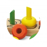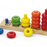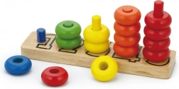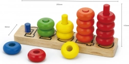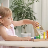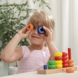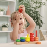 Stabilna drewniana podstawa oraz gładkie, bezpieczne elementy gwarantują długą trwałość i wygodne chwytanie małymi rączkami.