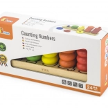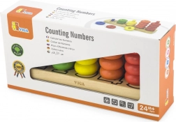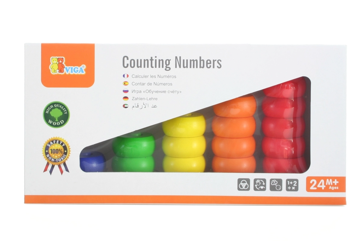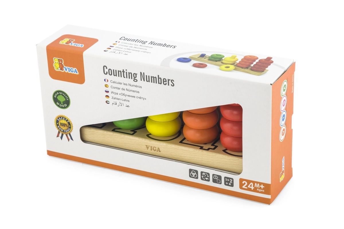 To trwałe drewniane liczydło zapewnia dzieciom bezpieczną i intuicyjną formę nauki. Na solidnej podstawie znajdują się pionowe kołeczki, na które dzieci nawlekają kolorowe krążki, segregują je według koloru i ilości oraz ćwiczą pierwsze umiejętności matematyczne. Zabawka wspiera logiczne myślenie i koncentrację.