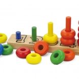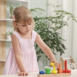 Kolorowe krążki na kołeczkach uczą dzieci rozpoznawania kolorów, segregowania i liczenia krok po kroku w formie zabawy.