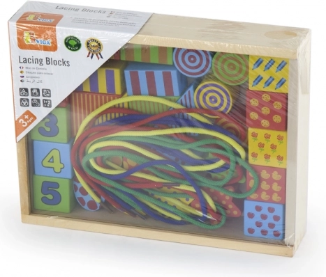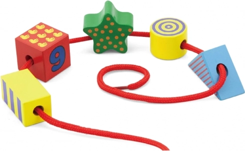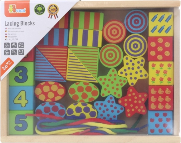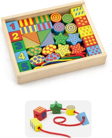 Odkryj kreatywną zabawę z drewnianym zestawem do nawlekania VIGA – pudełkiem pełnym kolorowych kształtów do nawlekania na sznurki jak koraliki. Wspiera motorykę małą, koordynację ręka–oko oraz naukę kolorów i kształtów. Elementy z wysokiej jakości drewna z nietoksycznymi farbami i dużym rozmiarem dla bezpiecznego chwytania.