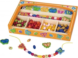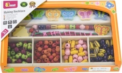 Ten bogaty zestaw drewnianych koralików oferuje szeroką paletę kolorów, kształtów i rozmiarów, dzięki czemu dzieci łatwo stworzą własne bransoletki czy naszyjniki. Przejrzyste przechowywanie w solidnym drewnianym pudełku ułatwia organizację i wielokrotną zabawę.