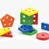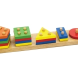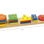 Drewniana podstawa z kołeczkami i kolorowe kształty geometryczne