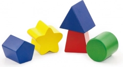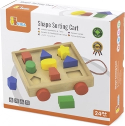 Wózek zawiera różne figury geometryczne, które pozwalają dzieciom w zabawny sposób uczyć się rozpoznawać różne kształty.