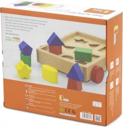 Drewniana układanka – wózek oferuje dzieciom zabawną i edukacyjną drogę do doskonalenia małej motoryki. W zestawie znajduje się wózek o wymiarach 24,5 x 22 x 7 cm oraz 9 kolorowych klocków o różnych kształtach, które należy prawidłowo dopasować. Ten wózek motywuje dzieci do zabawy, jednocześnie ucząc rozpoznawania kształtów.