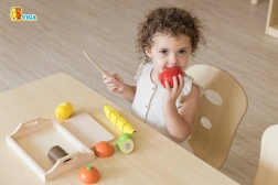 Dzięki rzepowi owoce można jednym ruchem kroić i ponownie łączyć, co wspiera rozwój małej motoryki.