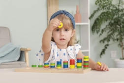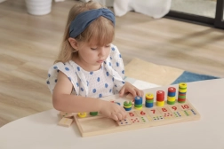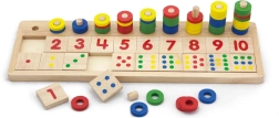 Za pomocą kolorowych pierścieni i ponumerowanych płytek dzieci mogą rozwijać swoje umiejętności matematyczne i myślenie numeryczne.