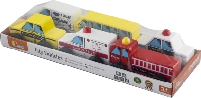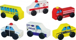 Zestaw drewnianych autek to idealne uzupełnienie dziecięcego pokoju. Zawiera autobus szkolny, samochód policyjny, samochód z lodami, taksówkę, wóz strażacki oraz ambulans. Każde autko oferuje specyficzne elementy, które wspierają naukę i rozwój zdolności motorycznych.